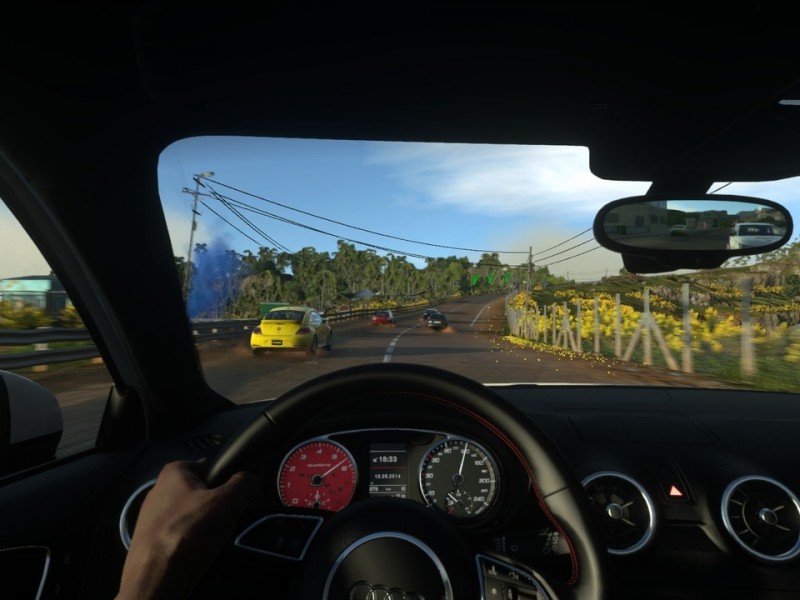 ![]() Plate-forme : PlayStation 4 Date de sortie : 08 Octobre 2014 Editeur : Développeur : Genre : Course Multijoueur : Oui Jouable via Internet : Oui Test par Nic0076/10 Après un retard de près d'un an, DRIVECLUB arrive enfin sur PlayStation 4. Avec talent ? Un gameplay hybride.Développé par Evolution Studios (MotorStorm), DRIVECLUB se présente comme un jeu de course mi-arcade mi-simulation nous permettant de concourir sur 55 pistes et au volant d'une des cinquante voitures les plus rapides du monde. A peine la partie débute t-elle que l'on découvre un premier écueil, le manque d'inertie des voitures. Les bolides glissent beaucoup, pas autant que Ridge Racer en son temps, mais on aura de cesse d'entendre crisser les freins tout au long de la partie, sans compter que vous pourrez court-cuiter allégrement dans l'herbe (ou dans la terre) sans que cela ne nuise au comportement de la voiture. Pour vous éloigner des sorties de piste, les développeurs ont ajouté des murs invisibles à la corde, et des pénalités de puissance si vous coupez un peu trop large. La gestion des collisions tient du pur jeu d'arcade et l'intelligence artificielle affiche des voitures qui se tiennent en file indienne, comme à l'ancienne. Parfois, il est même plus pratique de freiner en tapant un adversaire ou en percutant un mur que de freiner, car il n'y a pas de dégâts mécaniques dans DRIVECLUB. Autant vous dire qu'en multijoueurs, le titre tourne vite au pugilat, sans compter que l'IA n'hésite pas elle non plus à vous percuter, ce qui a pour conséquence de vous perdre des points d'expérience. La sensation de vitesse n'est pas vraiment très présente, et les aides électroniques ne sont à aucun moment désactivables (vous pourrez juste choisir une boîte manuelle ou automatique). Pour compenser la lenteur de vos adversaires dans les virages, le jeu augmente sensiblement le niveau des concurrents dans les lignes droites, ce qui fait que vous serez souvent dépasser, même si vous conduisez parfaitement et disposez de la même voiture que l'I.A. Un comportement qui peut rappeler les anciens Mario Kart, mais qui étonnante dans un jeu comme DRIVECLUB. D'ailleurs, la ressemblance ne s'arrête pas là, puisque le niveau des rivaux s'adaptent sur la vitesse des joueurs. Vous pourrez donc vous arrêtez au milieu de la piste sans que cela ne perturbe les autres ! Une réalisation concluante ?Exclusivité PS4, on attendait que DRIVECLUB soit l'un des porte-étendards de la console. Finalement, ce n'est pas forcément le cas. Les voitures sont très bien modélisés, la vue intérieure est impressionnante (le cockpit est splendide), le cycle jour/nuit est très joli, la profondeur de champ est appréciable, et les décors ne manquent pas de charme. A contrario, les environnements s'avèrent inégaux, on détecte un peu de clipping, la météo dynamique n'est pas encore accessible (une mise à jour est prévue), les effets de réflexion demeurent assez limités, et l'animation manque d'énergie. PS4 oblige, il est bien sur possible de jouer sur PlayStation Vita via la fonctionnalité Remote Play. La prise en main est immédiate, et l'aspect sonore ne manque pas d'intérêt, même si les bruits de moteurs cachent un peu trop souvent la musique. Comme mentionné plus haut, DRIVECLUB intègre 50 voitures, la plupart émanant de constructeurs européens. Quant aux circuits, on retrouve 11 pistes par pays (il y en a cinq un tout), à savoir le Canada, la Norvège, l'Inde, l'Écosse et le Chili. Vous pourrez sillonner le globe pour participer à des compétitions, vous mesurer à des adversaires, relever des défis et asseoir votre renommée. La vôtre, mais aussi celle de votre club. Cela étant, le mode Carrière est assez court, comptez une petite dizaine d'heures pour en voir le bout. Dans DRIVECLUB, vous êtes constamment connecté au PlayStation Network. Vous pouvez ainsi partager vos expériences, envoyer des défis, en recevoir et rester en permanence informé des performances de votre équipe. De distinction en distinction, votre notoriété grandira à chaque course. Vous pourrez ainsi accéder à un nouveau contenu et participer à davantage de courses. Pour profiter pleinement du jeu, il vous faudra adhérer à un club. Vous aurez ainsi accès à davantage de courses, sans oublier des défis originaux, pour gagner toujours et encore plus d'expérience. Bien sur, vous pourrez également retrouver des courses multijoueurs classiques, mais comme mentionné précédemment, la conduite arcade du jeu pousse à des affrontements musclés sur le PSN. VERDICT-DRIVECLUB n'est clairement pas le jeu que l'on attendait. Ce titre propose des sensations de pilotage très arcade, une intelligence artificielle linéaire à souhait, et un système de clubs uniquement utile pour engrenger de l'expérience. Heureusement, les défis sont nombreux et la réalisation technique assure l'essentiel. On aurait toutefois aimé espérer mieux de la part des auteurs de la série MotorStorm. |