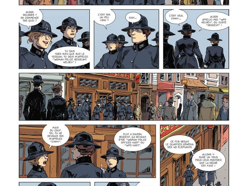 La série a tout pour devenir grande. Un excellent cadre, un bon scénariste en devenir et une grande dessinatrice. Le scénariste Kid Toussaint poursuit la tendance à la hausse dans cette troisième partie indépendante. Toute l'histoire est vraie, les dialogues sont captivants et les nombreux rebondissements surprenants de l'intrigue provoquent spontanément des applaudissements. Virginie Augustin est également en pleine forme. Les dessins, nerveux et extrêmement fins, se dirigent de plus en plus vers son bouleversant Monsieur désire, écrit par Hubert. Ce dernier est le coloriste de 40 éléphants et il complète le travail. Ses couleurs pastel donnent à la série quelque chose d'amour conflictuel et les cinquante nuances de gris des pages de flashback apportent également une contribution utile. Nous pourrions presque récompenser cette partie par un grand prix. Presque. Il aurait été formidable que l'histoire prenne un peu plus d'air, comme le premier diptyque. De plus, cette intrigue est assez forte pour être portée par deux parties. Mais maintenant, certains éléments, comme l'introduction de l'équipe de police féminine dans un monde masculin, reçoivent trop peu d'attention, ce qui les rend un peu trop incroyables. C'est bien dommage. En ce moment, Augustin travaille sur une biographie de deux cents pages, en noir et blanc, d'une dame millionnaire atypique un peu oubliée, toujours sur le scénario d'Hubert. Il faut espérer qu'elle reviendra à ses éléphants par la suite, car cette saga, en partie basée sur des faits réels, peut se poursuivre en ce qui nous concerne.