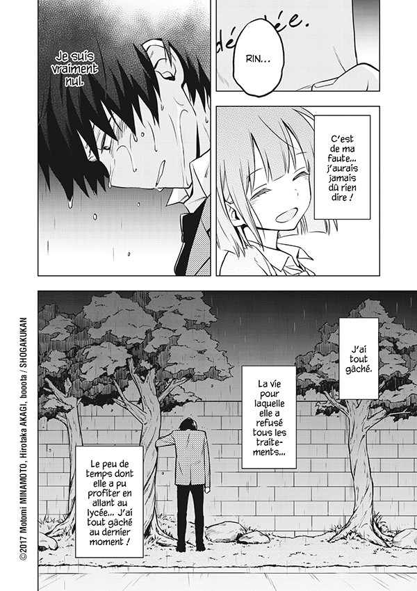 ![]() Plate-forme : Bande Dessinée Date de sortie : 03 Juin 2020 Editeur : Développeur : Genre : Bande dessinée Multijoueur : Non Jouable via Internet : Non Test par Redaction8/10 Scénario : Hirotaka Akagi Second Summer, Never See You Again (Nidome no Natsu, Nidoto aenai kimi) est une série en deux tomes publiée au Japon aux éditions Shogakukan. Rin Moriyama est né d'une maladie incurable. Malgré tous ses efforts pour mener une vie normale au lycée, Satoshi Shimehara est celui qui l'a ruinée à la toute fin. «J'aimerais ne pas avoir dit que je l'aimais.» Satoshi, plein de regrets, connaît un saut dans le temps et rencontre Rin pour la deuxième fois. «Si je ne m'implique pas avec elle, Rin pourra passer le peu de temps qui lui reste et terminer avec un sourire ...» VERDICT-Même si on sait déjà qu’une probable fin tragique l’attend encore, nous avons hâte de voir la suite et la fin de ce manga. C’est une belle romance, très mature, que tout le monde devrait lire ! |