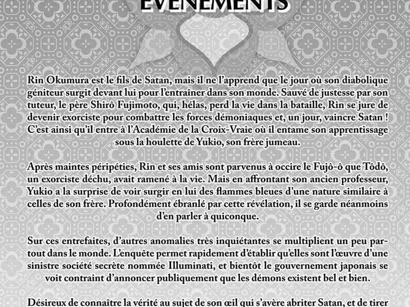 Comme il sied à un shonen, Blue Exorcist nous offre de l'action, de l'ambiance, un rythme rapide, des combats, mais aussi des intrigues intéressantes, des personnages fouillés, beaucoup de secrets, un grand humour... nous pourrions continuer longtemps. Donc, si vous ne connaissez pas encore "Ao no Exorcist" et que vous aimez les shonen ou tout simplement le divertissement, l'horreur légère et le fantastique, vous devez absolument vous procurer cette série. Vous trouverez ici tout ce que vous cherchez et bien plus encore. Après tout, la série mélange divers schémas et esthétiques, s'inspirant fortement des mangas et des animes, ainsi que de la culture pop au sens large.