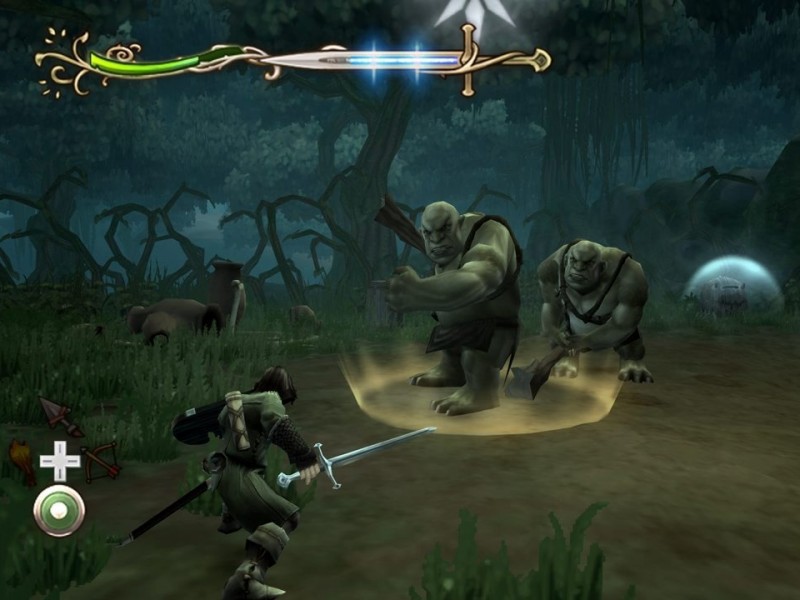 Développé par Headstrong Games (HOTD Overkill, Batallion Wars 2), Le Seigneur des Anneaux : La Quête d'Aragorn vous renvoie sur la Terre du Milieu où vous pourrez revivre les meilleurs moments de la trilogie dans la peau d'Aragorn avant qu'il ne devienne roi du Gondor. L'histoire débute donc devant les portes du Mordor, où vous devrez affronter les troupes de Sauron pendant que Sam et Frodon prennent la fuite. Pas de surprises du côté du gameplay, il s'agit d'un jeu d'action/aventure offrant une jouabilité proche d'un Zelda Twilight Princess. Passé un prologue assez simple finalement, vous devrez, avec l'aide de Frodon, apprendre les principales commandes de base et le système de quête du SdA. En effet, outre les missions obligatoires (symbolisées par une étoile dorée), un grand nombre de quêtes annexes répond présents (avec des étoiles argentées). Lors de ces dernières, on pourra glaner de nouveaux artefacts, permettant d'améliorer les habiletés d'Aragorn.