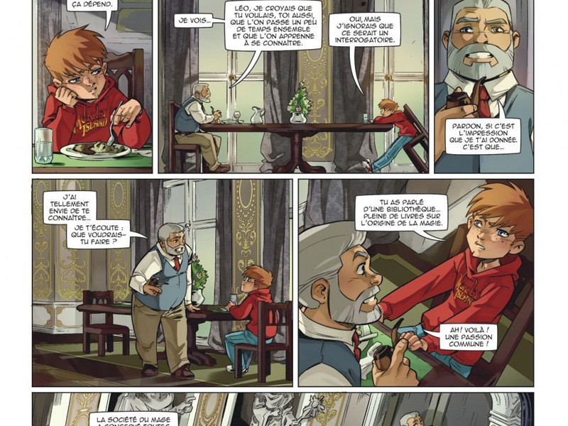 Comme son nom le suggère, Magic 7 met en scène un groupe de sept adolescents aux pouvoirs immenses. On retrouve le Spirit, l'Alchimiste, l'Enchanteur, le Télépathe, la Démoniste, le Devin et le Shaman. Ces sept jeunes ne savent pas vraiment ce qui les attend, mais en fonction de leurs choix, ils pourront sauver le monde ou le détruire. Actuellement, leur plus grande préoccupation, c'est d'arriver à l'heure à l'école ! Parmi l'équipe, nous retrouvons Léo, capable de communiquer avec les fantômes et très tenté d'utiliser ses pouvoirs pour se défendre contre les caïds de la cours de récréation, Farah qui héberge en elle une entité démoniaque, et enfin Hamelin qui peut parler avec les animaux. Suite à leurs précédentes affres, Julie, la directrice de l'école Mercury, a décidé de mettre en place un règlement intérieur beaucoup plus restrictif. Dans ce volume, Léo se rend chez son père afin de resserrer les liens familiaux. Ce dernier lui demande comment se manifeste ses pouvoirs, mais la conversation tourne court car Léo s'ennuie. Mais à peine foule t-il le tapis de la bibliothèque, qu'il se retrouve littéralement happé dans un autre monde. En se replongeant dans sept livres abordant les origines de la magie, il en apprend davantage sur les sept mages originaux. Et la vérité est très différente de ce qu'il pensait : Il n'existe pas sept mages mais huit, l'un d'entre eux a trahi ses congénères. De plus, les pouvoirs des Magic 8 originels ne se sont transmis qu'à leur premier héritier, les autres enfants d'un magicien étant irrémédiablement condamné. A l'aide de son don, Léo va faire appel à de grands esprits (notamment Léonard de Vinci, Jean-François Champollion et Alan Turing) afin de décoder certains écrits en langage crypté.