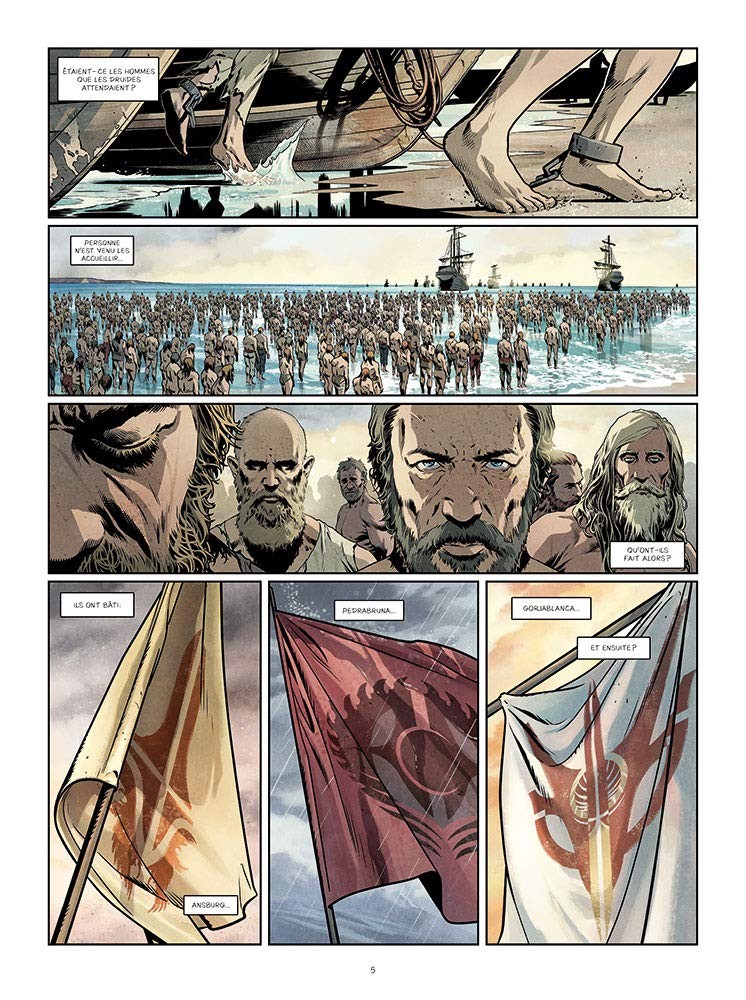 Le décor médiéval et l'histoire rappellent un peu Game of Thrones. Surtout si vous regardez de près la violence à laquelle nous sommes confrontés. L'artiste espagnol Sergio Sandoval surprend avec ses dessins, car l'homme était auparavant surtout actif comme dessinateur de bandes dessinées américaines telles que Hellboy et Gear School. Ses dessins ne sont en aucun cas comparables à ses précédents comics, le style est plus en accord avec l'école européenne et est très éloigné de ce que l'on pourrait attendre de quelqu'un qui a été plongé dans le monde du comics pendant des années. Sandoval travaille aussi beaucoup avec des dessins qui occupent toute la largeur de la page et il réussit aussi à faire parler l'image pendant des pages longues sans une seule trace de texte. Le romancier espagnol Gonzalo Torné de la Guardia est responsable des textes. Il sait comment nous présenter une histoire intéressante avec assez de tension et où vous en savez juste assez pour suivre l'histoire, car cette première partie d'Alma Cubrae est très mystérieuse et peut ouvrir de nombreuses perspectives pour l'avenir. A la fin de ce tome un, une petite partie du mystère est déjà résolue, mais le lecteur n'a absolument aucune idée de la direction que prendra cette histoire dans l'avenir. Une mission réussie pour gagner des âmes pour cette nouvelle série qui connaîtra normalement quatre tomes. A noter que l'idée originelle vient d'une compagnie de spectacles médiévaux-fantastiques nommée Alma Cubrae.