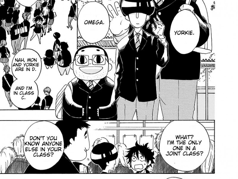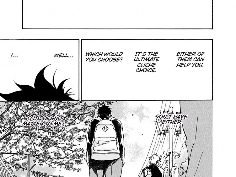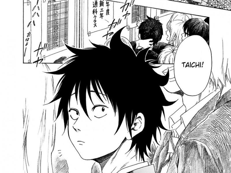 L'histoire elle-même commence assez lentement et se développe par petites étapes en une trame vraiment belle qui pourrait laisser penser que nous sommes dans un shojo et pourtant Blue Flag est bien un shonen. Contrairement à la plupart des "dramas" prenant place au lycée, l'intrigue nous plonge dans une période où les personnages sont obligés de réfléchir longuement sur leurs relations personnelles et sur leur avenir. Les personnages principaux apparaissent très sympathiques et le style de dessin les rend également bienveillants. Les luttes personnelles ne sont pas mesquines et concernent de vrais problèmes de caractère, de personnalité et d’idéaux. Personne n'est malveillant et le conflit est principalement causé par des sentiments de doute et de culpabilité. Ce premier tome affiche peut être des protagonistes un peu figés ou pas assez expressifs, mais il faut noter que le graphisme évolue au fil des chapitres et gagne en détails. Le déroulement du scénario est très ambitieux et les développements s'avèrent prometteurs. Le triangle amoureux se complique encore dès le chapitre cinq !
