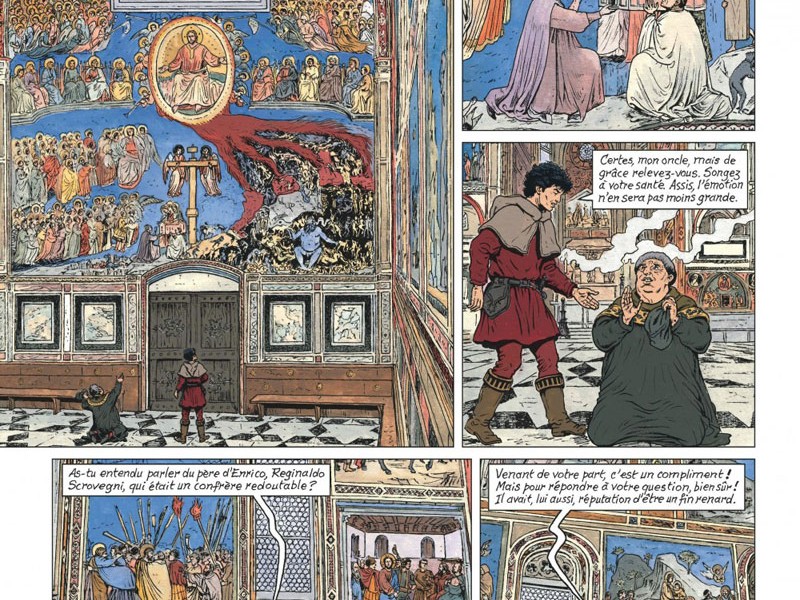 Italie, XIVème siècle. Tolemeo Tolomeï, riche banquier siennois, confie une nouvelle mission à son neveu Vasco Baglioni, jeune marchand italien. Ce dernier va devoir négocier l'achat d'un tableau auprès d'un grand peintre, l'immense Giotto, et le convaincre de peindre l'Église du couvent où Tolemeo veut finir ses jours. La rencontre aura lieu à Florence, sauf que Vasco et son oncle font un détour par Venise où ils rencontrent le doge pour une affaire encore bien délicate. La banque de Tolomeo a laissé des traces compromettantes dans les livres de comptes et il va falloir s'en débarrasser. Un travail qui repulse Vasco, c'est d'ailleurs pour cela qu'il n'héritera pas de l'établissement bancaire, étant beaucoup plus droit et honnête que son frère Lorenzo, véritable homme de main de son oncle, qui s'apprête d'ailleurs à se marier. Oh ce n'est pas tant un mariage d'amour mais plutôt une "transaction" imposée par des contrats.