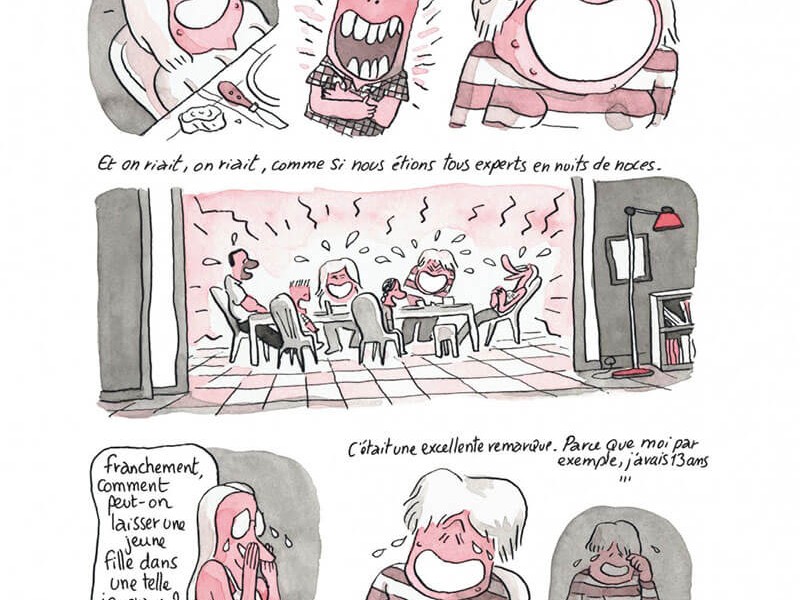 Florence Dupré La Tour ne se départit pas d’un rictus qui donne à sa colère le goût de la farce. Pucelle confirme la place majeure qui est la sienne dans la bande dessinée contemporaine, entre le choc Carnage (Mauvaise Foi, 2019) et la claque Sugar Daddy, dont la prépublication dans Mon Lapin Quotidien (L’Association) suit son cours.
