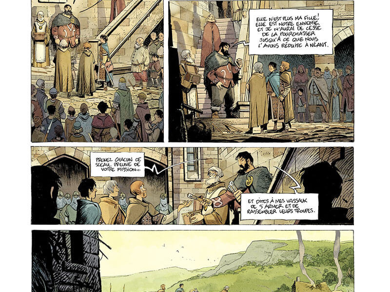 Hubert, que nous avez vous laissé là encore une fois ? Quel don que celui de jouer avec les codes des contes, de la fantasy et des sentiments, aussi sombres soient-ils tous ? Quelle jolie métaphore sur la difficulté de se défaire de l'héritage parental, quelle est donc notre part de libre-arbitre quand nous reproduisons ce que nous ont transmis ceux qui nous ont élevés. Ces deux êtres ont commis une erreur, dans quelle mesure cela doit-il les poursuivre toute leur existence ? Avec brio, comme c'était à son habitude, le regretté Hubert nous emmène au cœur d'un conte fantastico-médiéval sombre et violent qui comporte son lot de chevaliers, d'honneur, de mythe (Mélusine traine indubitablement dans les parages), d'amour et de mort. Lorsqu'il est temps d'assumer qui on est, ce qu'on ressent, et nos erreurs comme nos forces, c'est là que Vincent Mallie intervient aussi ! Le dessin est encore et toujours somptueux, en mouvement, en émotions. Nous sommes absolument fans de ce trait fin si poétique et si vivant, ou l'ombre et la poussière se battent avec le fer et le sang quand la lumière et l'amour ne sont pas en reste. Une fois que tous se sont rejoints, et qu'il faut finalement en finir, il reste le goût des larmes. Parce qu'au final, l'Amour est peut-être le seul sentiment qui se fraiera toujours un chemin vers la lumière, quitte à tout dévaster sur son passage.