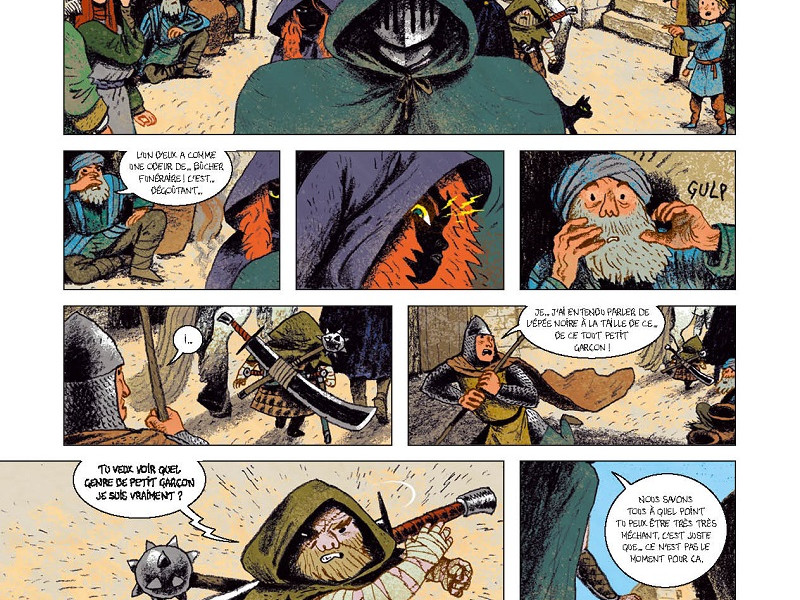 Avec beaucoup d'humour, Stephen Desberg nous entraîne dans un moyen âge à la fois fantastique, des fantômes aux pouvoirs surhumains, et réaliste. On y parle de croisade mais aussi de la condition des "petites gens". Une époque très dure que l'auteur nous restitue avec humour et un scénario prenant. Les illustrations d'Alexander Utkin complètent parfaitement le scénario. Les traits sont vifs, les personnages mystérieux, et le dessin est à la fois réaliste et étrange : la jeune fille rousse à la peau noire, l'homme masqué, le chat au physique qu'on qualifiera de longiligne, le perroquet qui donne, lui, l'impression d'être passé sous un train et le cheval qui est très expressif lorsqu'il s'énerve. A eux quatre, ils forment un groupe très disparate voire incongru et pourtant ils se complètent parfaitement et forment une bande en définitif vraiment sympathique et on espère pour eux qu'ils réussiront à redevenir humains à moins qu'une autre destinée les attende...