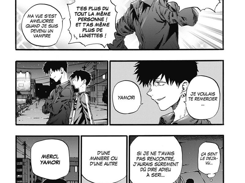 La comédie de Call of the Night est ce qui nous fait revenir à chaque fois. Bien sûr, il y a la façon dont Kotoyama dessine ses personnages et les leçons de vie qu'il tente de raconter, mais ce sont les rires qui sont les plus importants dans cette série. Aussi, lorsque quelques histoires délaissent les rires pour des récits plus sérieux, on ne peut s'empêcher de penser qu'il manque une étincelle à la formule. C'est ce qui se passe dans le quatrième volume de Call of the Night, qui s'attaque aux harceleurs et aux apparitions étranges. Nazuna accepte un emploi dans un café de femmes de chambre sur le thème des vampires, où travaille également sa compatriote Midori. Mais un incident avec l'une des servantes les plus populaires entraîne la recherche d'un harceleur. Ko retrouve son ancien professeur principal, tandis qu'Akira retrouve la fille que Ko avait rejetée avant de rencontrer Nazuna. Tout cela mène à une nuit tardive dans la cour de l'école, où une certaine légende urbaine s'avère être vraie ! La partie la plus amusante commence lorsque Ko a un entretien avec Aki (le type mental du volume 3). Son point de vue sur la façon dont il s'est amélioré depuis qu'il est un vampire donne à Ko l'espoir que sa vie s'améliorera également si Nazuna l'aide à se transformer. Cela conduit également à des amusements nocturnes entre Ko et Nazuna dans un café de mangas, ce qui donne lieu à des tentations sexuelles osées. C'est une jolie façon d'ouvrir le volume, qui montre les côtés mignons et coquins de Nazuna.
