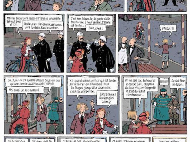 Dix ans après Spirou - Le journal d'un ingénu, Émile Bravo revient pour raconter sa version du plus célèbre groom de bandes dessinées avec le premier volume de la quadrilogie Spirou - L'espoir malgré tout. Mais que fait Spirou pendant que les Allemands occupent la Belgique ? Si nous lisons les histoires publiées dans Le Journal de Spirou au cours du conflit, nous réalisons que la guerre n’est jamais mentionnée dans les pages de bandes dessinées. Les aventures se succèdent normalement, incluant humour, enquêtes et voyages dans des pays exotiques. Il n'y a pas d'Allemands, il n'y a pas de conflits, nous ne parlons pas d'actualité. Dans cet ouvrage, nous suivons la vie du groom au début de la Seconde Guerre mondiale, l'auteur français nous montre Spirou aux prises avec l'invasion allemande: l'hôtel où il travaille est bombardé, un ami juif allemand est déporté en France de peur d'être un espion, il perd le contact avec Kassandra (sa bien-aimée, une jeune fille polonaise); voit un véhicule militaire touché par une bombe à quelques mètres de lui, vit l'occupation militaire, la censure du journal de Fantasio (Le Soir) et bien sur le rationnement. Ainsi se poursuit l'évolution de son personnage, une maturation à travers les difficultés du conflit qui l'amènera à devenir progressivement un peu moins naïf et un peu plus réaliste. La richesse de l'intrigue est équilibrée par la clarté de la conception. Le trait de Bravo provient directement de la ligne claire qui a toujours réussi à la saga. Bravo revient alors en quelque sorte aux origines du personnage, même d’un point de vue esthétique.