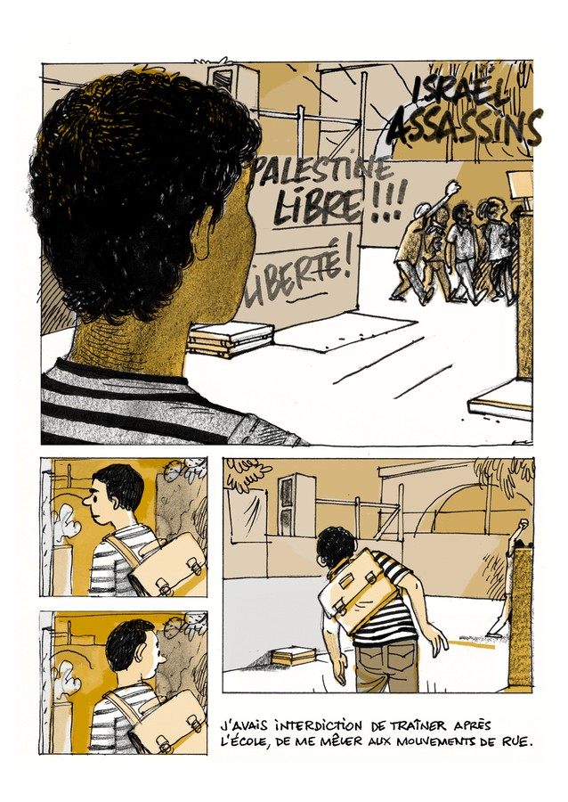 Cet ouvrage, tiré d'une histoire vraie, est un témoignage sincère d'un conflit qui semble insolvable et il marque un véritable basculement pour sa victime. S'il avait été libéré tout de suite de prison, Moh aurait sans doute été abasourdi par son arrestation mais aurait repris une vie d'ado banale, venant d'une famille de professeurs sans histoire. Mais ce séjour forcé de huit mois éveillera en lui une conscience militante, qui heureusement grâce aux études, vont lui éviter toute forme de radicalisation. Moh mentionne qu'il cultive son jardin entre Orient et Occident. Il vit désormais en France où il est chercheur. Côté dessin, le trait est vif, assez sobre contrairement à la thématique abordée.