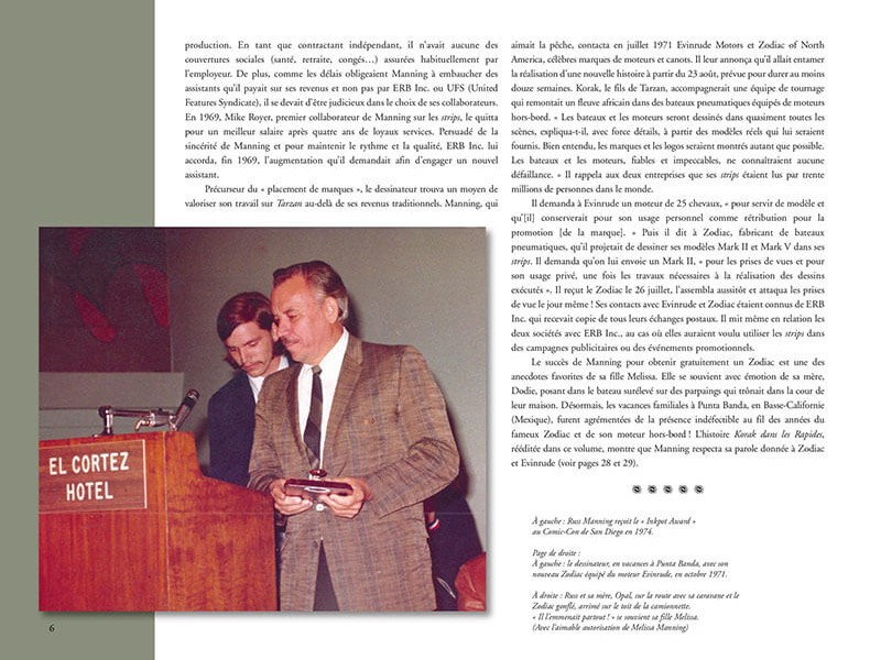Lorsque Russ Manning a commencé à prendre en charge, en 1965, la franchise Tarzan pour les bandes dessinées, personne ne pouvait imaginer que l'étape la plus glorieuse de la série commençait. Cette étape dans les magazines mensuels de l'éditeur Gold Key n'était cependant pas son travail le plus remarquable. C'est dans la presse que l'auteur trouvera le moyen le plus approprié d'exprimer son talent. Le Tarzan de Russ Manning pour les journaux des États-Unis est la meilleure expression dans la bande dessinée de ce personnage riche en adaptations extraordinaires. Le 11 novembre 1967 commence le séjour de Manning dans les journaux quotidiens et le 14 janvier 1968 marque le début de son voyage dans les colonnes du dimanche. Russ Manning différencie nettement les deux cas : Dans les strips quotidiens, Tarzan partage l'affiche avec son fils Korak, les dimanches le Seigneur de la jungle règne dans toute sa splendeur. Manning se trouve être l'auteur complet des strips, il est responsable des scripts, de l'art et de la couleur. Mike Royer et après William Stout ou Dave Stevensils l'assisteront avec les encres et les parcelles, en particulier dans les quotidiens.
