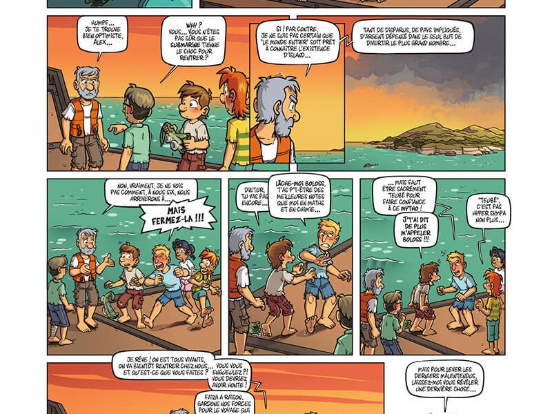 ![]() Plate-forme : Bande Dessinée Date de sortie : 04 Mars 2020 Editeur : Développeur : Genre : Bande dessinée Multijoueur : Non Jouable via Internet : Non Test par Redaction7.5/10 Scénario : Sébastien Mao Cinq enfants, accompagnés de leur moniteur, profitent d'une très belle journée d'été pour aller faire un tour en mer. Néanmoins, une vague gigantesque a raison de leur frêles embarcations et le groupe s'échoue sur la plage d'une île hostile. Alex, passionné de survie, va pouvoir mettre ses compétences à profit pour espérer retrouver ses amis. Rapidement, il tombe sur Charly, avec qui il partageait son catamaran, et tous deux vont chercher à rendre l'eau potable, à construire une cabane pour la nuit et tenter d'envoyer un message de détresse. Et surtout, où ont-ils réellement atterri ? L'île est en effet le théâtre d'événements étranges (tremblement de terre, tornade, éruption volcanique, bruits effrayants). Sont-ils au purgatoire (façon LOST) ? Dans un univers virtuel ? Rien de tout cela, un simple parc d'attractions né d'un génie malveillant ... VERDICT-Island est un diptyque moins classique qu'on aurait pu le penser. Sous couvert de récit d'aventure, les auteurs abordent de véritables problèmes de société (comme la manipulation de l'opinion), le tout sans mièvrerie. Une bonne surprise. |
