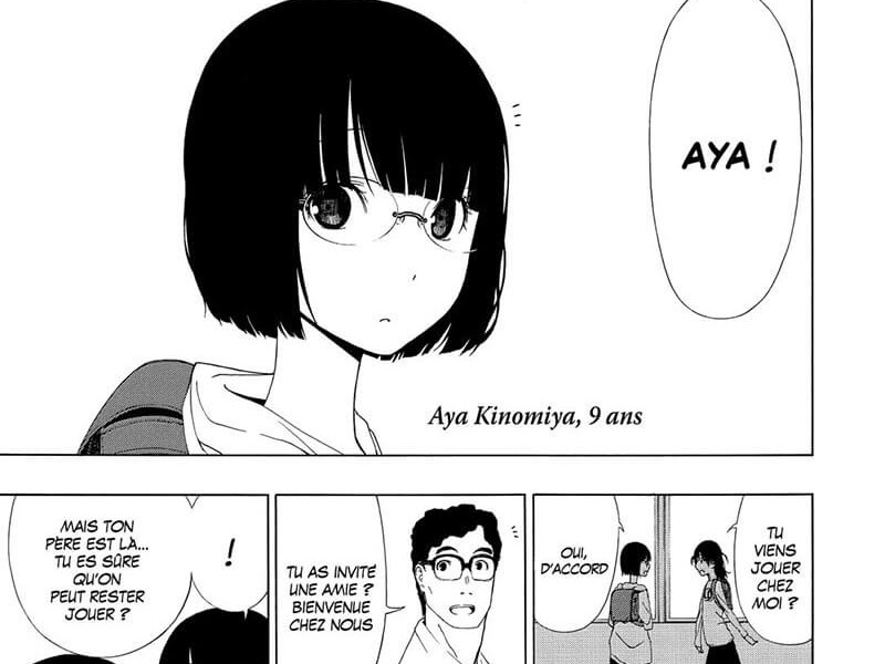 Le dessin est très épuré, fin et bien recherché. Chaque personnage par son chara design veut dire quelque chose ; le père est grand, étiré, imposant, avec une gueule aussi effrayante que celle du grand méchant loup ; la mère est plus fine, plus petite, malléable, elle semble sur le point de se briser ou de s'envoler. Quant à Aya, elle s'exprime très peu, elle encaisse, elle subit, elle n'a plus envie d'être là. Les rares expressions qu'elle a font d'autant plus leur effet. Tout est très contemplatif, les scènes importantes sont bien construites, Aya est un personnage réfléchi qui analyse calmement et méthodiquement son pouvoir. Ce dernier a un sens et elle le sait. Pas de grands élans affectifs explicites du côté des personnages à chaque page, loins de là, c'est plutôt comme un film en noir et blanc un peu mélancolique, un ensemble de souvenirs d'une personne dont on ne sait rien mais qui nous fascine. Tout dans ce manga était attirant, le résumé énigmatique, la couverture magnifique et le dessin tout en contraste.