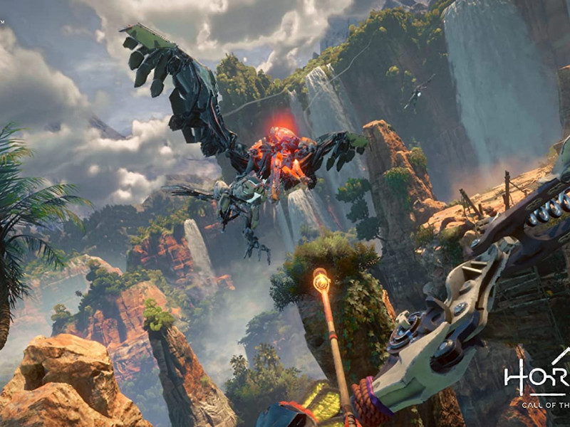 Découvrez le monde de Horizon Call of the Mountain à 360 degrés et interagissez avec votre environnement en utilisant deux manettes.