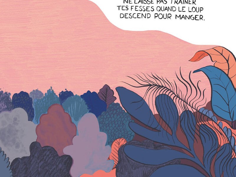 Vous l’aurez compris, Lupano, Itoïz et Cauuet ont encore frappé. Nos vieux briscards nous ont encore une fois entortillés dans leurs pages ou l’humeur joyeuse et massacreuse sévit pour notre plus grand bonheur. Rien ne nous est épargné : nos humeurs peureuses, nos pièges anti-machins, anti-humains, nos hommes politiques et leurs travers, la protection et autres brigades militaires. Ils sont machiavéliques et un brin taquin, rebrousse poils comme nous les aimons. Un vrai plaisir à décortiquer ces quelques pages où ils jouent avec nos peurs, nos émois, nos frayeurs de l’autre, de l’inconnu, de celui qui ne nous ressemble pas et sème l’effroi dans nos pays policés (ou « polissés »). On retrouve la verve « des vieux fourneaux » à qui un joli clin d’œil est adressé en fin d’ouvrage mais aussi à notre Bigouden préférée qui se révoltait contre les pollueurs et autres profiteurs de notre planète dans « Un océan d’amour ». Ils n’hésitent pas à se transcender pour mieux nous amener à découvrir qui est le loup, cette drôle de bête qui se balade en slip dans les forêts. (Un slip kangourou faut dire… quelle idée géniale). Il y a de la faconde, de la fougue, de l’œil pétillant et des sacrées mises en abimes à nos sociétés. Les « dialogues » de Wilfrid Lupano sont drolissimes à souhait, plein d’actes révolutionnaires et de conseils judicieux pour être terrorisés. Tout est décortiqué, fin, vrai et rempli de candeurs (comme les vieux fourneaux). C’est à la portée des enfants qui rient de voir le loup ainsi se promener en slip et à nous, pauvres adultes, qui sourions de nos effrois à découvrir qui est cet inconnu qui nous terrorise tant. Quant aux illustrations signées Mayana Itoïz, elle joue admirablement bien sur les couleurs sombres et inquiétantes en début d’ouvrages, celles qui apportent l’inquiétude, l’effroi. Elles rebondissent sur le scénario de Lupano sans l’alourdir mais au contraire en décomplexant nos revers, mettant le doigt là où il faut, montrant nos irraisonnables raisons. En utilisant les animaux de nos forêts, Itoïz joue, tel La Fontaine, de nos comportements pour nous mener vers la rencontre de celui qui a l’arrière train assis sur une pierre.