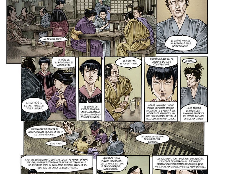 La prémisse vaut la peine d'être lue et nous n'avons certainement pas affaire ici à une énième BD de samouraïs. L'univers japonisant, les personnages et l'ambiance du récit sont très intéressants. Le personnage de Sadakïo s'avère obstinée et, par certains aspects, indifférente aux autres. Seul compte l'accomplissement de la promesse faite à son fiancé, son immense chagrin est le seul moteur de son comportement. Mais quand bien même elle trouverait le masque, il lui faudrait littéralement mettre les pieds en Enfer d'un point de vue mental, alors que son enveloppe physique resterait dans le monde des vivants, autant dire s'exposer au danger d'être attaqué pendant qu'elle est ailleurs. Masamura est davantage qu'un paysan curieux et débrouillard, nous découvrons son passé tragique et pourquoi il a choisi cette forme de couverture (il semble d'origine noble), alors qu'il opère des tâches de mercenaire dans ce second tome. L'histoire signée David Chauvel se révèle parfaitement construite, tandis que le superbe dessin de Roberto Ali compose d'admirables paysages et de singuliers personnages.