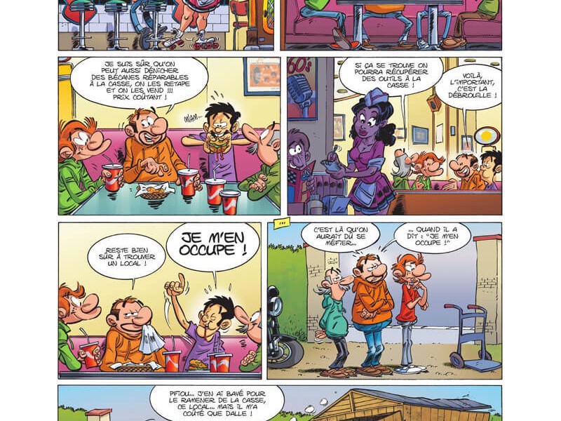 Dans ce tome onze de la série, la fine équipe décide de créer un atelier participatif. Ce garage solidaire est une structure qui permet d'intervenir soi-même sur son véhicule ou de faire appel à un spécialiste pour une intervention à moindre coût (les pièces à changer pourront par exemple être récupérées à la casse). Un lieu bien sur ouvert aussi bien aux mécano expérimentés qu'aux débutants qui désirent s'initier à la réparation en bénéficiant des conseils d'un spécialiste. Mais avant toute chose, il va falloir trouver le local idéal et les problèmes vont se multiplier pour les motards. Par la suite, l'un des membres va découvrir une Terrot RSS enfouie dans son jardin, une moto française datant de 1939. Cette découverte va éveiller l'intérêt du groupe pour les bécanes d'antan (Peugeot, Benelli, Motobécane, Gillera, etc). L'occasion de découvrir également un pan du passé des deux roues, avant que l'électronique n'entre en jeu. En tout cas, le récit demeure toujours très amusant, et le trait graphique plein d'humour cela va de soi. Les gags savent se renouveler avec les années sans qu'aucune lassitude ne vienne s'installer.