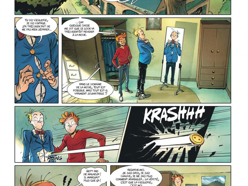 Les aventures de Spirou et Fantasio vont être adaptées sur grand écran. Une perspective qui réjouit surtout Fantasio qui postule pour jouer son propre rôle ... sauf que le metteur en scène le trouve trop vieux. On lui propose dès lors d'auditionner pour le rôle du Comte de Champignac, "un vieillard qui sent le champignon", mais Fantasio est un piètre comédien. Son caractère ne correspond pas du tout à celui de Pacôme (calme, bienveillant et fantasque) et on le décrit comme "arrogant, colérique, psychorigide". Bref, tout commence pour le mieux. A peine rentré chez Spirou qu'il décide de ressortir son emblématique costume de l'ère Franquin, sauf qu'il ne peut plus rentrer dedans ! Spirou tente de lui remonter le moral et c'est alors qu'il apprend enfin l'existence de ce projet de biopic. Il propose à Fantasio d'aller sur le tournage en tant que journaliste afin de concevoir un making of pour le Moustique. Sur le plateau, Spirou est déconcerté par l'acteur choisi par la production pour incarner son personnage ("lisse et sans personnalité") alors que le comédien s'avère très ressemblant. Même Seccotine est déçue du scénario car on la cantonne au rang de femme-objet et le réalisateur n'a pas vraiment une bonne réputation. Plus étonnant, le producteur ressemble beaucoup à Zorglub. Vraiment beaucoup.