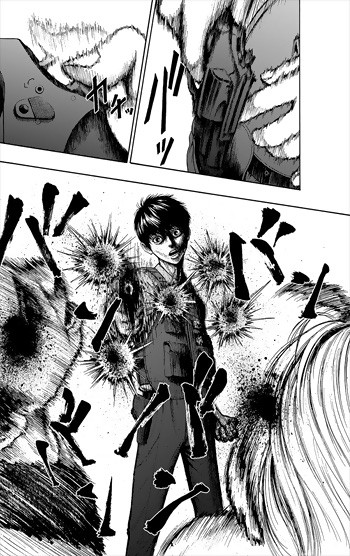 Jagaan (Jagaaaaaan) est une série toujours en cours de parution au Japon et qui a connu six tomes à ce jour aux éditions Shogakukan. Shintarô Jagasaki est un policier médiocre travaillant dans un petit poste de quartier. Il passe ses journées à se faire humilier par les voyous et ses collègues du commissariat, il ne montre pas non plus assez d'autorité à sa petite amie avec qui il vit. Pourtant, un sentiment d'oppression l'écrase, il ne sent aucune perspective dans sa vie et il n'a pas la volonté de changer. Mais un jour, après une pluie bizarre de grenouilles, les gens qui l'entourent commencent à se transformer et deviennent d'horribles créatures assoiffées de sang. Les grenouilles ne sont que des parasites prêts à se glisser dans le système nerveux des hommes pour prendre possession de leur subconscient. Si Shintarô est également infecté, le symbiote qui a envahi son corps est toujours à l'état larvaire de têtard, donc incapable d'affecter le cerveau de son hôte. Le garçon découvre bientôt qu'il possède des facultés extraordinaires lui permettant de transformer ses membres en armes à feu redoutables, devenant Jagaaan celui qui est prédestiné à libérer l’humanité de la peste tombée du ciel. Sur le chemin, sa volonté sera conduite par un étrange hibou qui parle, Doku , et il comprendra qu'il n'est pas le seul à avoir développé des super pouvoirs liés au parasite tout en préservant l'usage de la raison.