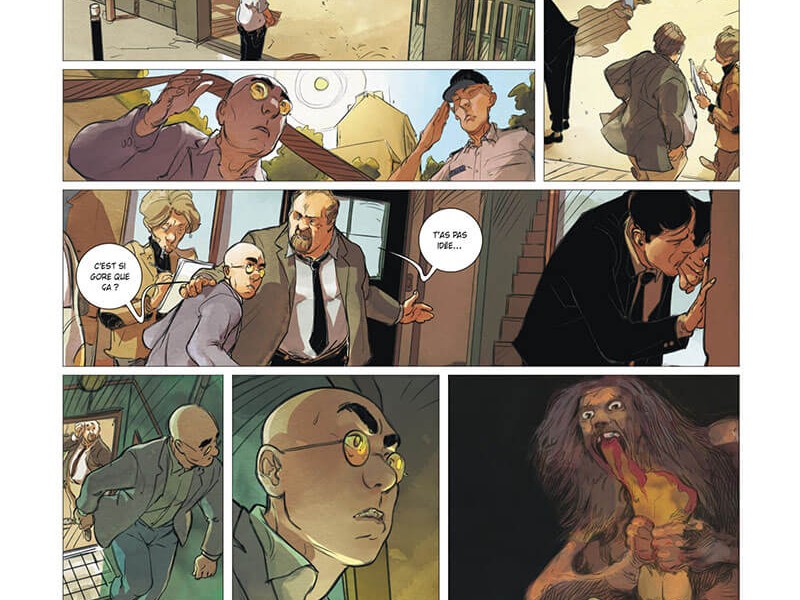 Brigade Verhoeven est la deuxième adaptation de la tétralogie de Pierre Lemaitre, ce volume se focalise sur le roman "Irène" et la chronologie des événements a été revue pour donner davantage de rythme à la bande dessinée. Irène est en réalité le nom de l'épouse de Verhoeven et il est clair que le lecteur sait, dès le début, qu'elle sera un personnage clé de l'ouvrage. Cela rend la tension presque insupportable mais aussi totalement convaincante. Du côté de la police, nous retrouvons le commissaire Verhoeven, présenté comme discret et solitaire (à noter qu'il ne mesure que 1,45 m), Louis le riche élégant, Armand le radin et Jean-Claude, le coureur de jupons du groupe. Il faut noter que cette histoire n'est pas pour les âmes délicates, elle s'avère plutôt violente même si la brutalité semble appropriée au récit. Le dessin de Yannick Corboz (L'Assassin qu'elle mérite) propose des personnages bien travaillés et un style semi-réaliste de bon aloi.