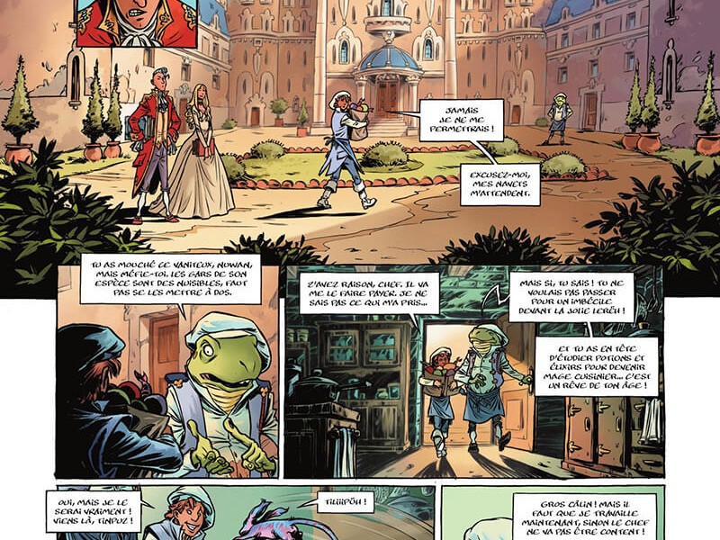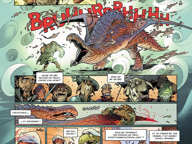 Première bande dessinée du nouveau label dédié à l’imaginaire dirigé par Christophe Arleston, celle-ci se composera d’un total de trois albums, une série courte, comme apparemment la plupart des projets à venir de cette nouvelle maison. Nouveau label, mais pas nouveaux acteurs, on y retrouve un trio habitué à nous produire des albums de qualité. Ainsi les traits d’Olivier Boiscommun mettent en valeur les différentes scènes qui permettront à l’intrigue de se mettre en place au fil de la lecture, le tout colorisé de façon toujours aussi douce par Claude Guth. Concernant le scénario, on reconnaît forcément la pâte de l’auteur, des notes de Lanfeust, un peu d’Ekhö, de l’humour, des personnages attachants et d’autres très caricaturaux, un mix qui se marie à merveille dans le monde de la fantasy. Un rythme assez calme dans la première partie du tome, puis tout s’accélère après un excès de zèle de notre personnage principal. A noter que la présente édition, la première, contient un carnet de croquis en fin d’album.
