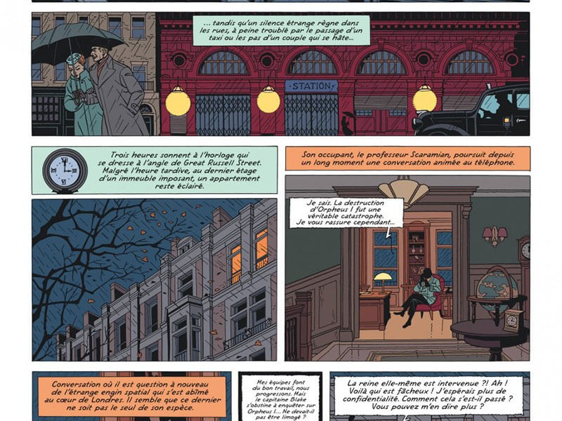 Quand on pense à Jean Dufaux , nos pensées vont principalement à la série romaine Murena . Mais la série la plus connue sur laquelle il a travaillé est sans aucun doute Blake et Mortimer. Plus d'albums de ce classique sont maintenant sortis après la mort du créateur Edgar P. Jacobs qu'avant sa mort. Bien que Dufaux n'ait qu'un seul album à son actif dans cette série, l'onde Septimus est l'une des plus marquants. Il y a beaucoup réfléchi, mais en termes d'histoire, nous ne pensons toujours pas que ce soit le meilleur Blake et Mortimer. Dufaux avait l'intention de raconter son histoire complète en trois parties avec un rôle principal pour Olrik dans le rôle de l'éternel et ultime méchant. En raison des circonstances, l'intention de la trilogie a été réduite à un diptyque. Il n'a pas développé l'idée de faire connaître les origines d'Olrik. Au fait, il avait l'intention de faire d'Olrik le troisième fils du fasciste britannique Oswald Mosley (1896-1980). Les téléspectateurs de Netflix connaîtront Mosley principalement comme un personnage de la série Peaky Blinders. Parce que d'autres personnes impliquées dans Blake et Mortimer, dont l'éditeur Yves Schlirf, trouveraient que c'est un péché mortel de donner un passé à Olrik et que son personnage mythique disparaîtrait ainsi, Dufaux a été obligé de jeter 40 % de ce qu'il avait écrit dans la corbeille à papier. En retour, il s'est mis d'accord avec tous les autres scénaristes de Blake et Mortimer pour éviter le passé d'Olrik dans leurs histoires également. Il a également supprimé une autre idée d'histoire pour faire venir le cheikh Abdel Razek à Londres afin d'annuler sa malédiction sur Olrik. Ce qui précède garantit que nous comprenons mieux pourquoi l'histoire du Cri du Moloch prend une tournure différente à mi-chemin. Il semble que Dufaux ait commencé à la réécrire en partie à ce moment-là. La recherche de Lady Rowena par le capitaine Blake n'a pas d'objectif clair et la confrontation avec son père, Alfred Spark, a peu de valeur ajoutée, sauf que l'on sait qu'il était membre du groupe autour d'Oswald Mosley et qu'il semblait être l'un des principaux intéressés par le travail de Septimus. Plus intéressante est la découverte du professeur Mortimer qui est invité à bord d'un navire de recherche converti où il est informé sur le vaisseau spatial qui a détruit Blake dans l'onde Septimus. Ce n'est pas le dernier navire sur Terre. Le passager qui l'a transporté est connu sous le nom de Moloch. Sa visite sur Terre a un but, et quand il s'échappe, les recherches commencent. Le gouvernement l'a délibérément caché au public et a mené des expériences avec cette créature. En même temps, le professeur Mortimer tente de reprendre conscience. Olrik s'est effondré spirituellement après la confrontation avec l'être spatial.