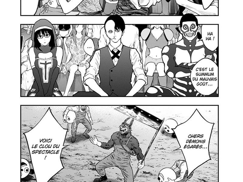 Suite et fin de la balade sanglante au parc d'attractions Deader Land. Un neuvième tome de "Jagaaan" où on voit peu Airi et ses colocataires par rapport à la place qu'ils occupaient dans les volumes précédents. En revanche, Jagazaki est très présent dès le début, d'abord en costume de fantôme de l'opéra, et son combat contre Chongirou Rabbit est plutôt spectaculaire d'autant qu'il a lieu en même temps que celui qui oppose le flegmatique Mikazuchi à Hoichi Nonsense. Un peu comme dans "Alice au pays des merveilles", les personnages avancent au pays des détraqués au risque de se perdre eux-mêmes. À la fin de ce volume, c'est la fin d'un arc avec plusieurs rebondissements et changements de cap dus à l'avancée de l'action et aux revirements psychologiques des personnages, sans compter ceux qui sont morts en cours de route. Le dixième tome verra donc le début du troisième arc de la série.