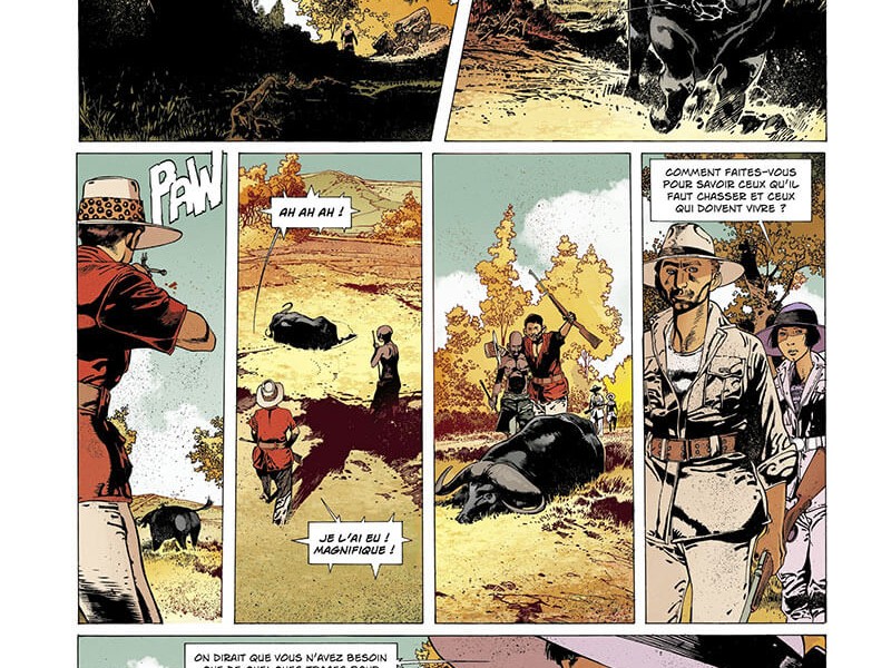 Le lion de Judah recrée toute une époque, c’est une vraie bande dessinée d’ambiance. Dans des tons d’ocres rouges, de beige et de noirs (bravo au coloriste Jérôme Maffre), cet ouvrage crée vraiment une atmosphère particulière, aride, lourde de mystères. On sent pleinement la violence endémique des années 1920 dans l’Afrique colonisée vis-à-vis des autochtones, le capitalisme implacable appliqué à tout : homme, nature (les riches qui viennent s'offrir les lions à chasser) etc. Dans ce tome deux, John Wallace a réussi à échapper temporairement à la vengeance de Naïsha et à ses mystérieux pouvoirs. Mangold l'engage comme pisteur pour un safari. Sa véritable cible est un trésor identifié sur une carte mystérieuse qu'il a trouvée à Addis-Abeba. Il emmène le chasseur et sa femme, Sarah, dans la région de la vallée du Rift, en Haute-Ethiopie, le terrain sacré où règnent les lions. Naïsha, à son tour, continue sa poursuite de Wallace. Les liens entre les deux personnages, le Lion et l'Aigle, se révèlent enfin. Grâce à la mise en place originale et au cadre intéressant, la première partie de cette série a su nous charmer. La deuxième partie fait un peu évolue la formule, nous avons l'impression que le scénariste Desberg secoue peu à peu l'intrigue de sa trilogie au lieu de la penser à l'avance. L'histoire est pleine d'accroches et les personnages font des sauts étranges pour s'assurer que tout a un sens. Le dessin du toulousain Hugues Labiano est fort, limite envoûtant. Les paysages sont grandioses, les visages très expressifs.